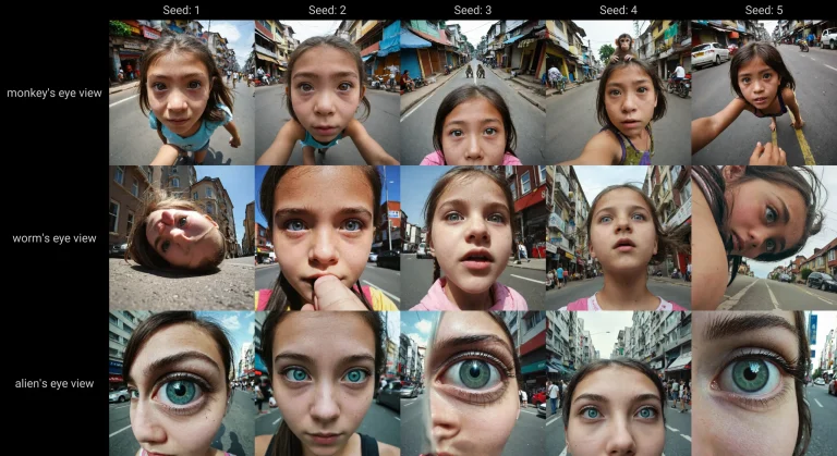 monkey's eye view, worm's eye view, alien's eye view - подобные "оригинальные" виды можете допридумывать сами, что самое интересное - это общий для всех крупный план с применением рыбьего объектива, эффекта селфи и щепоточкой преобразования лица в прописанную зверушку. Данный вид подходит больше для поприкалываться, нежели практического применения. Для достижения более стабильного результата, лучше воспользуйтесь сочетанием других токенов, например: gopro, macro shot, Fisheye-shot.