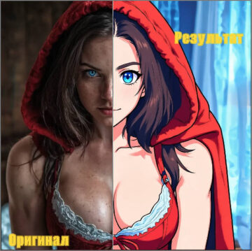 • полная перегенерация изображения используя референс для стиля и лица с описанием необходимых изменений в автоматическом / полу-ручном / ручном способе.