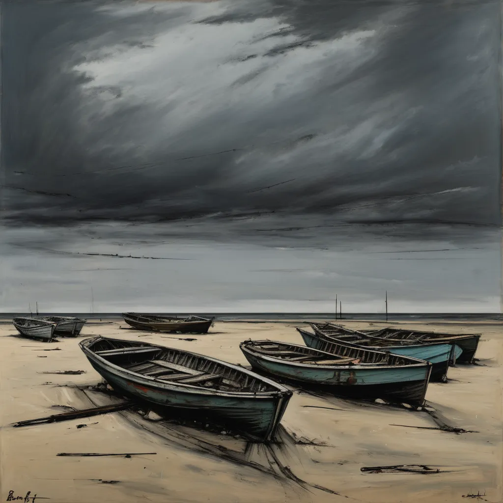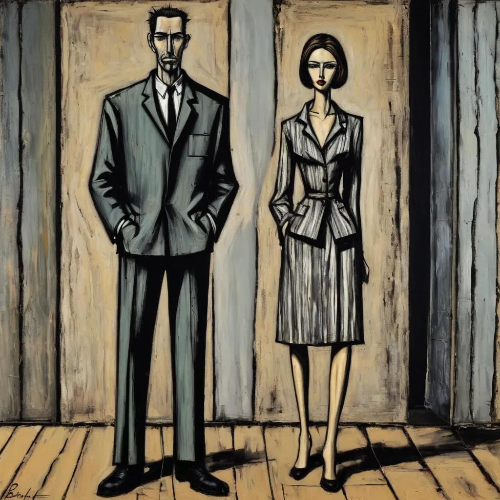 Бернар Буффе (1928-1999) – французский художник, известный своим уникальным стилем, характеризующимся мрачными, угловатыми и графичными изображениями. Его работы часто изображают сцены городской жизни, людей и пейзажи с сильной эмоциональной атмосферой и минималистической цветовой палитрой.