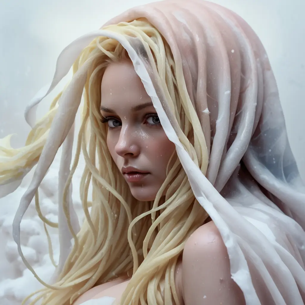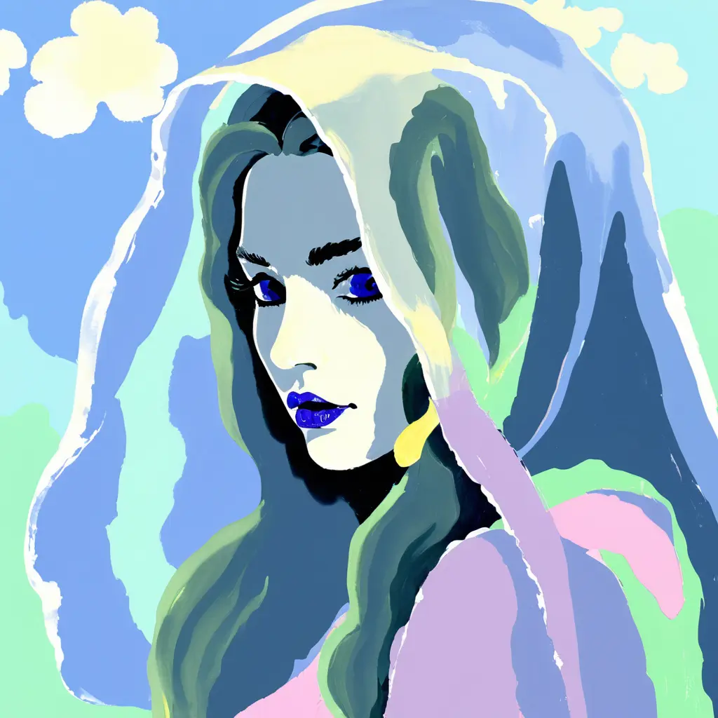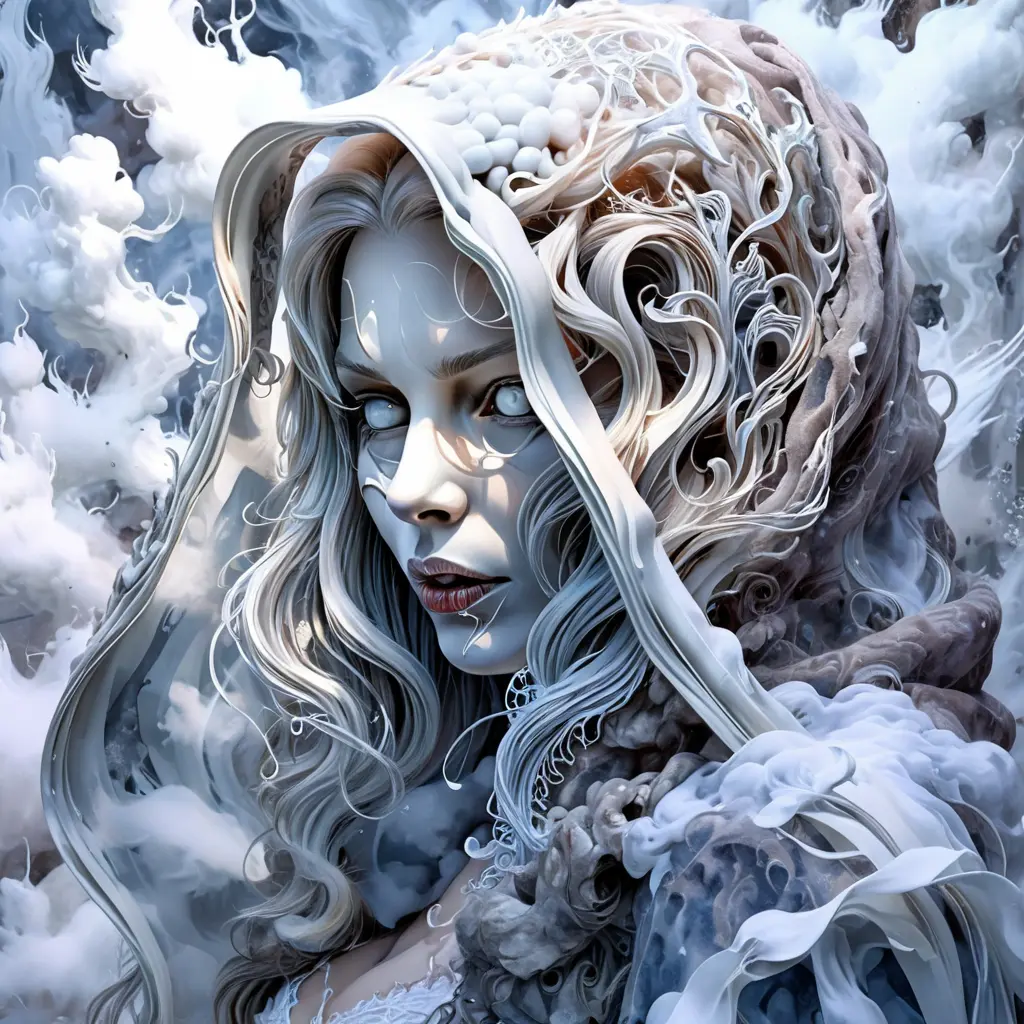 lady of the winter, extrem close up, sexy and mysterious silhouette, billowing transparent veil, watercolor painting, graffiti style, fantasy concept art, artistic photorealism, smooth, great masterwork by head of prompt engineering, amazing depth , simple background, great brush artwork