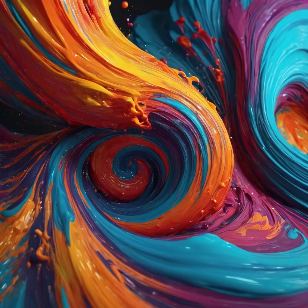 fluid dynamics art style, vibrant contrasting colors, simulation of fluid dynamics, swirling motion, volumetric