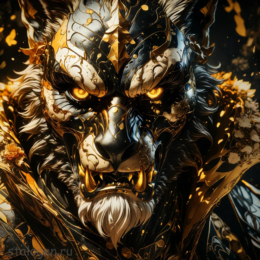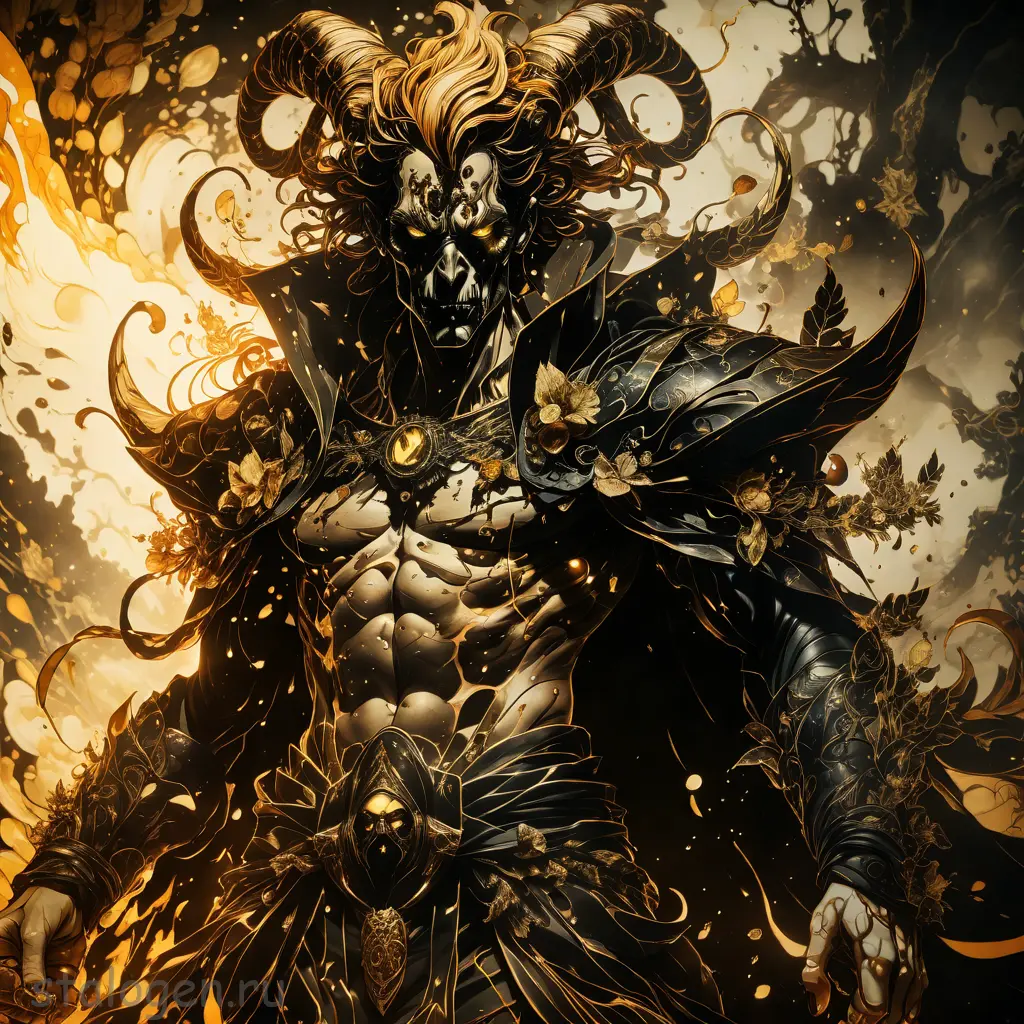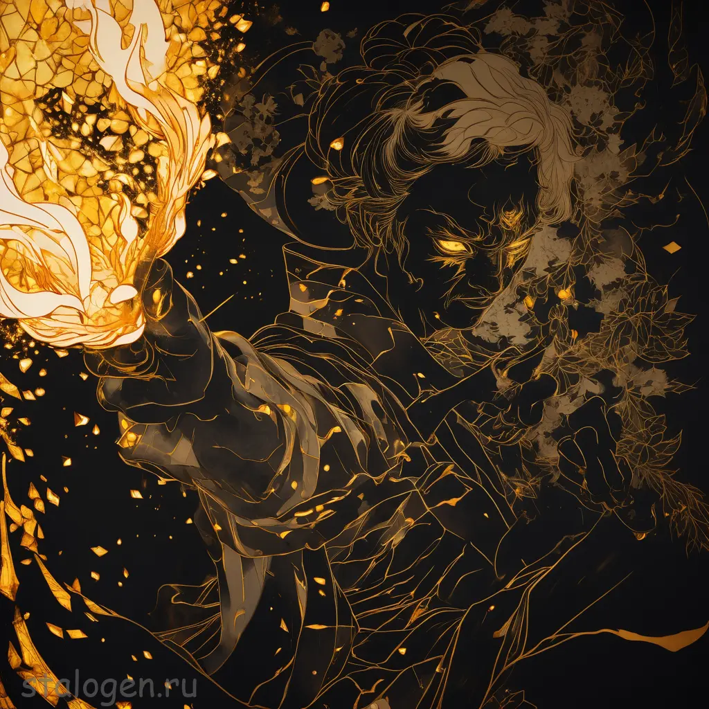 Havvoric Fire Dark style, pointing at viewer, golden crystals outlined in flames, dramatic shadows, ukiyo-e style