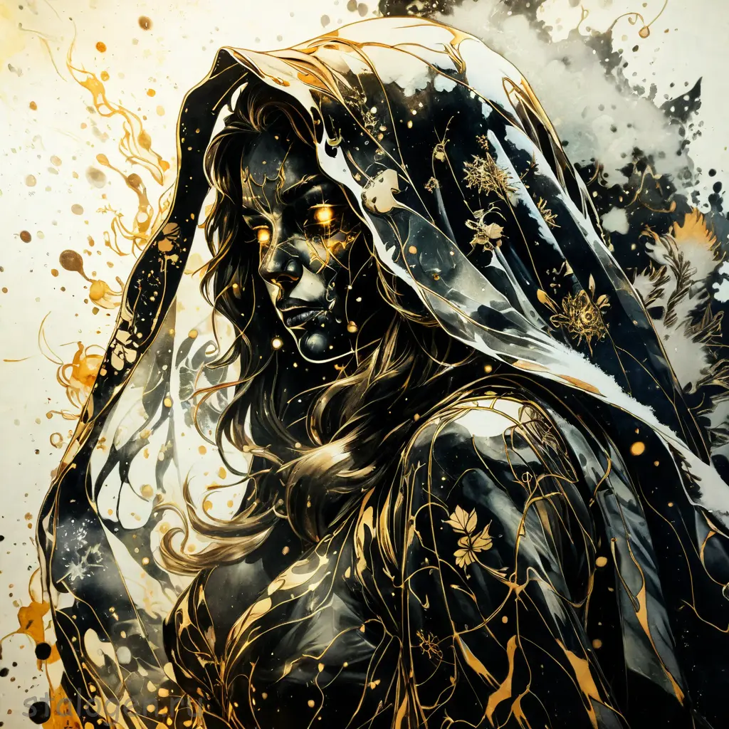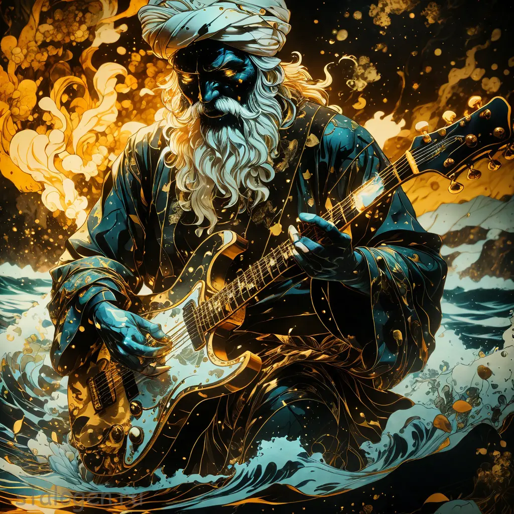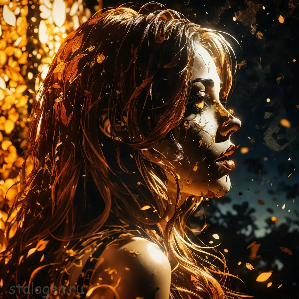 Havvoric Fire Dark style, pointing at viewer, golden crystals outlined in flames, dramatic shadows, ukiyo-e style