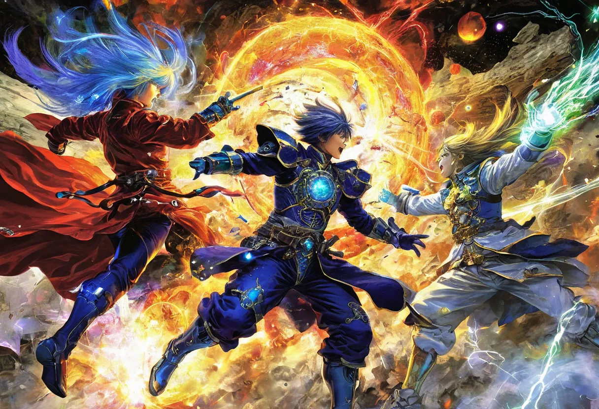 - Цветовая палитра: Использование насыщенных, но сбалансированных цветов, характерных для аниме и манги.