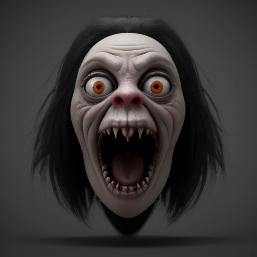 {Объект}, Character design for a humorous horror movie, creepy face and big teeth, octane render, crazy eyes