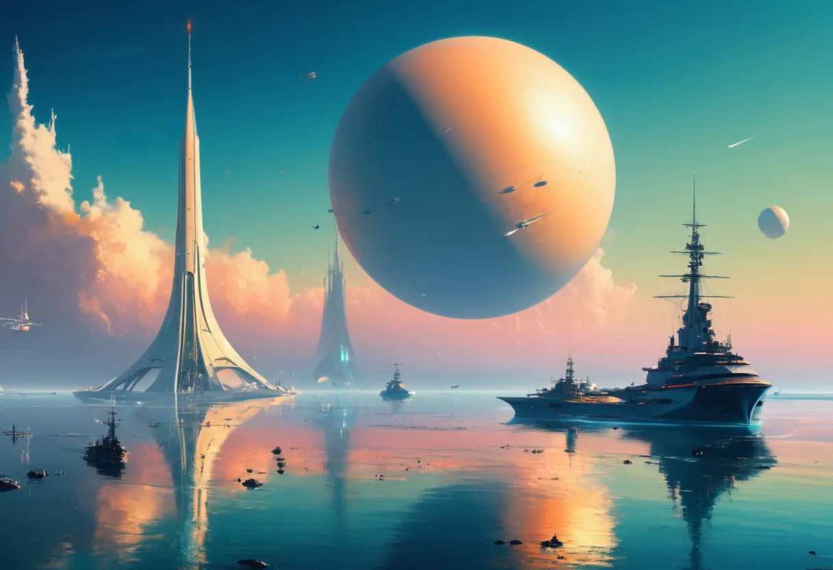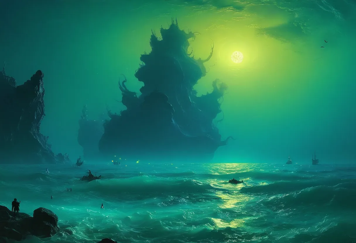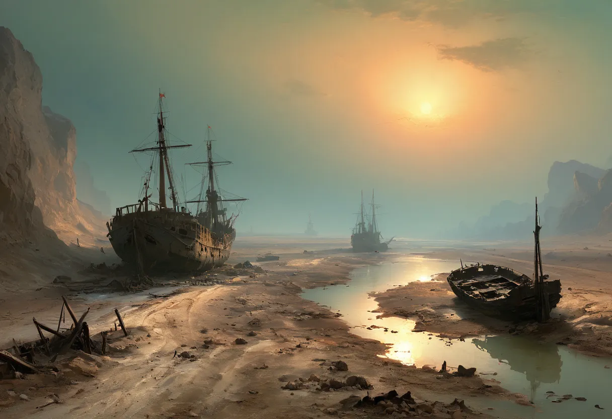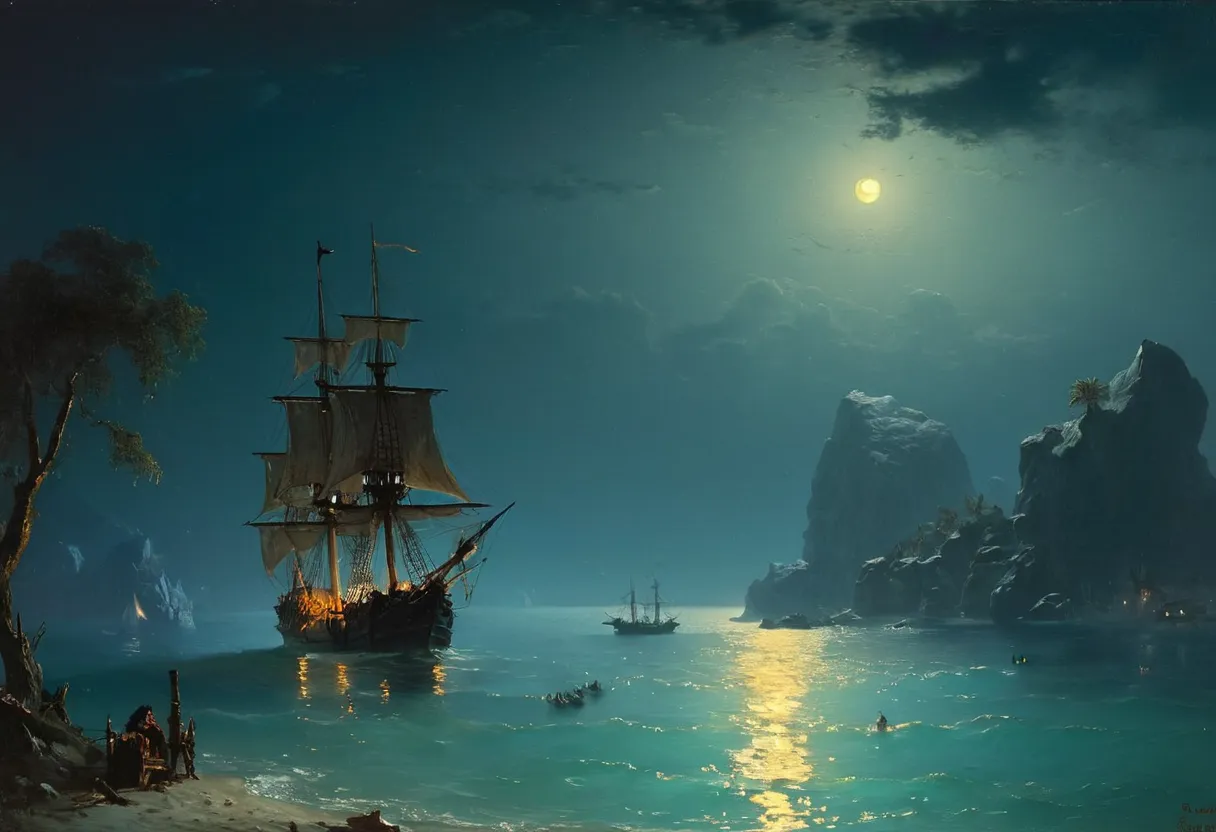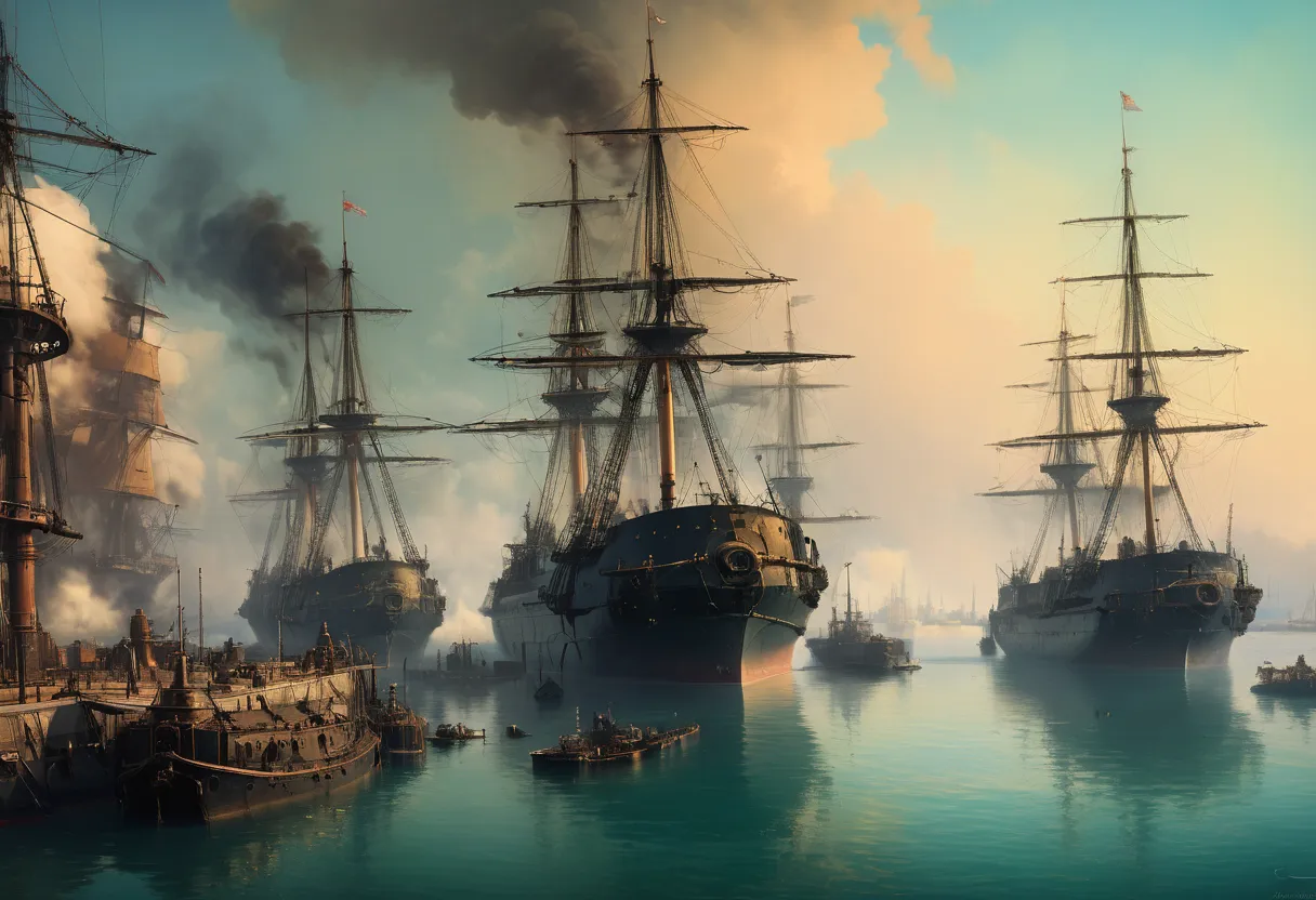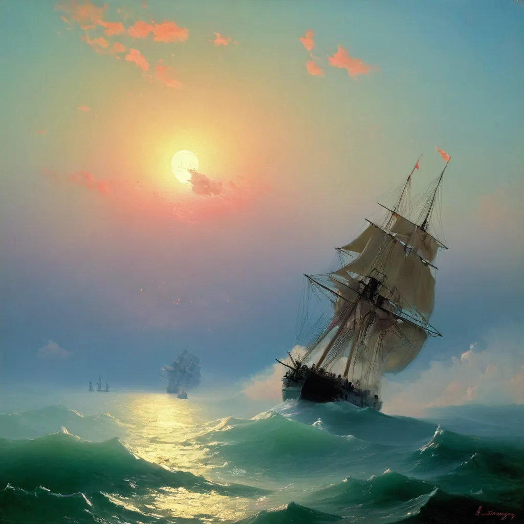 - Динамика: Изображения часто содержат движение — волны, корабли на фоне шторма.