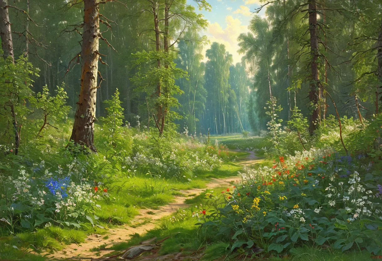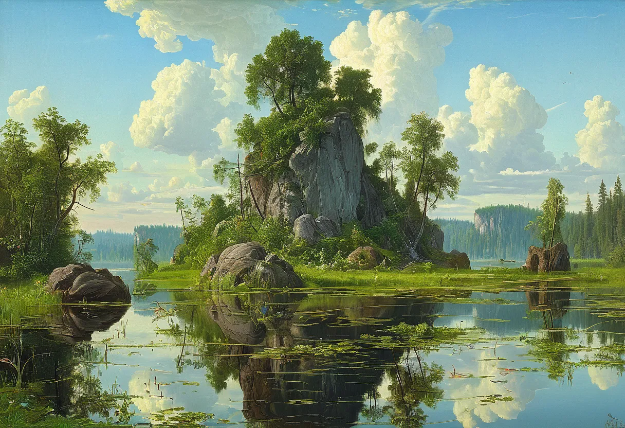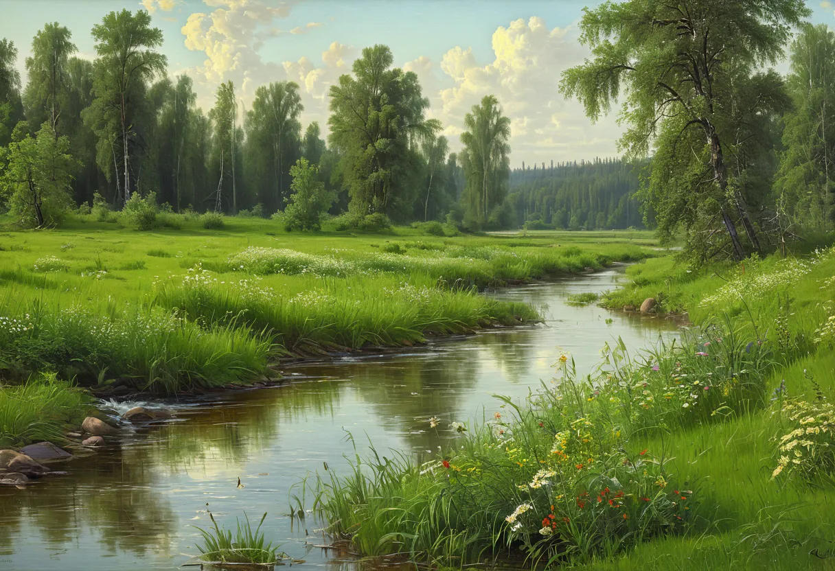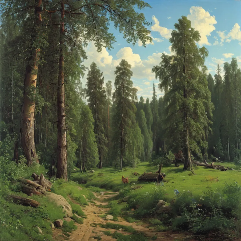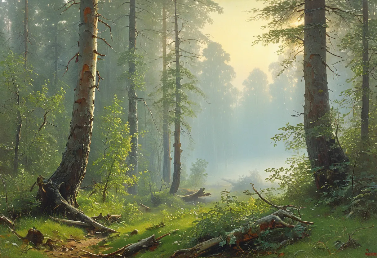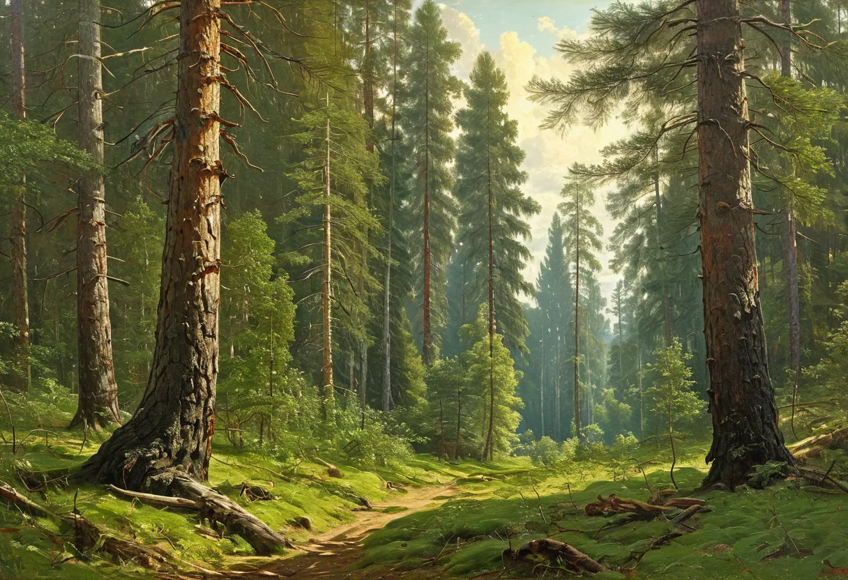 Иван Шишкин — российский художник XIX века, знаменитый своими пейзажами, изображающими природу России. Его работы отличаются высокой реалистичностью, детализированностью и гармонией композиции. Шишкин часто изображал леса, поля и реки, передавая богатство и красоту природы.