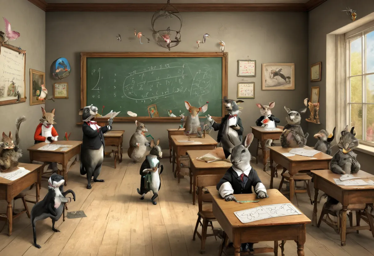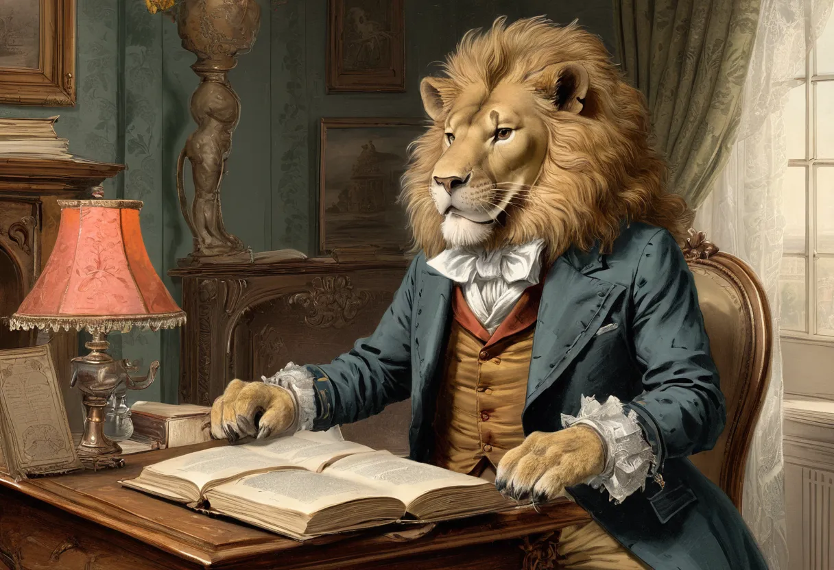 - Антропоморфизм: Изображения животных с человеческими чертами, стоящих, одетых и ведущих себя как люди.