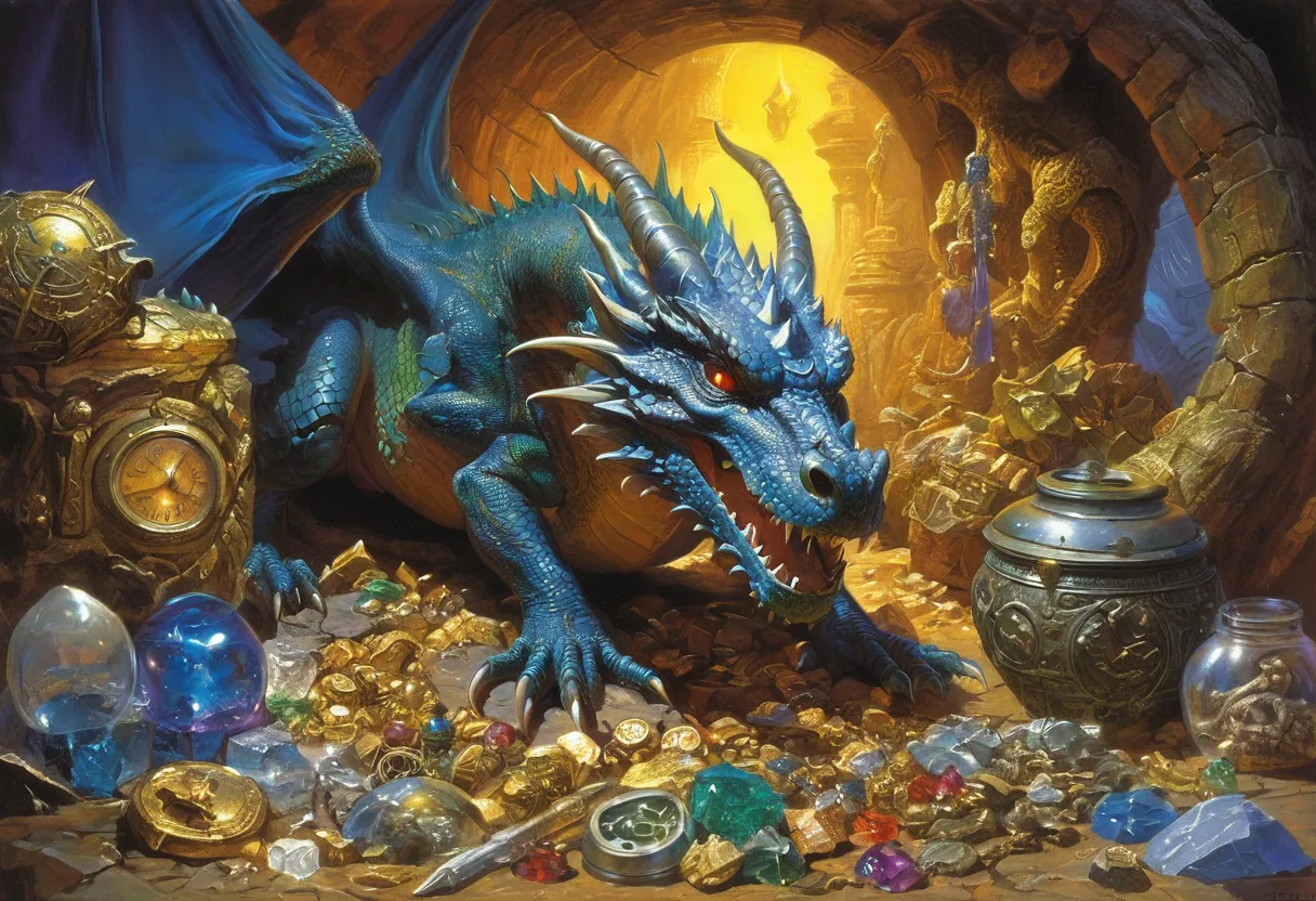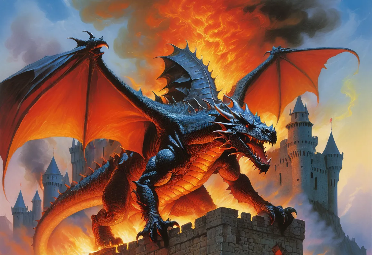 Jeff Easley — известный художник-фантаст, работавший над иллюстрациями для настольных ролевых игр, таких как Dungeons & Dragons. Его стиль отличается эпическими фэнтезийными сценами, яркими и насыщенными цветами, героическими фигурами и детализированными фантастическими существами. В его работах часто присутствуют элементы средневековой фантазии, такие как рыцари, маги, драконы и другие мифологические существа.