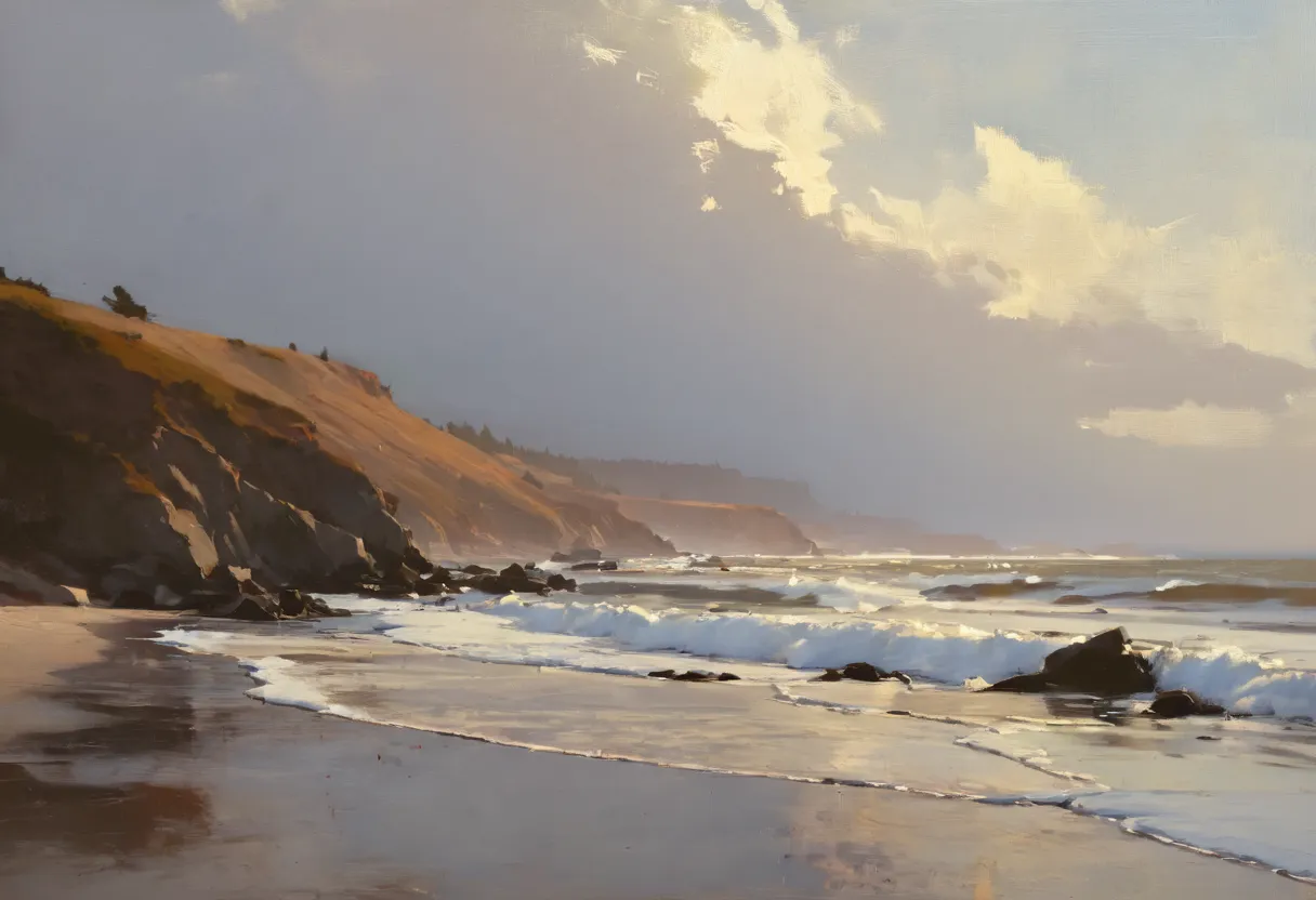 - Свет и тени: Мягкие, плавные переходы света и тени, создающие нежное освещение и атмосферу.