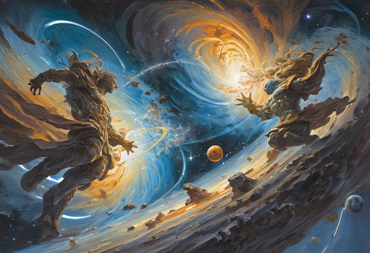 5. Эпичность и масштаб: Часто изображения получают эпический размах, с огромными существами, масштабными пейзажами и напряженными боевыми сценами.