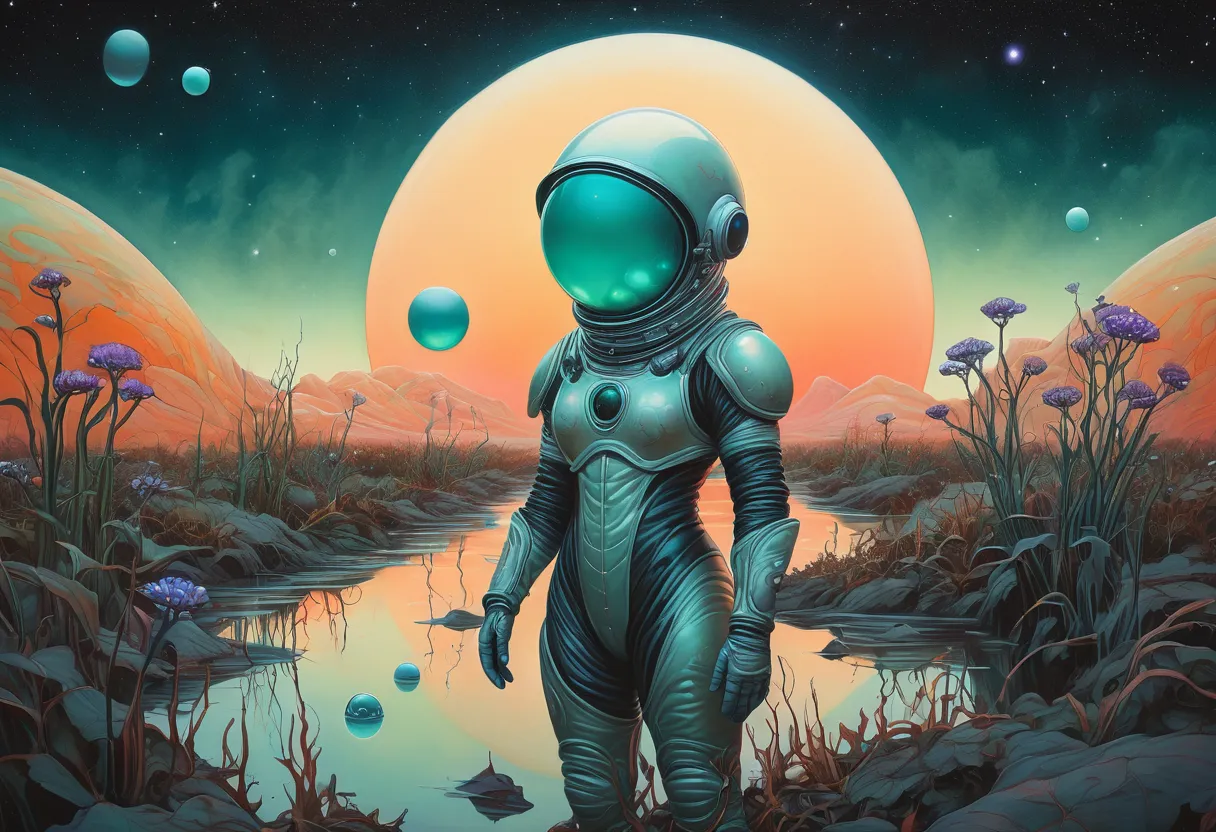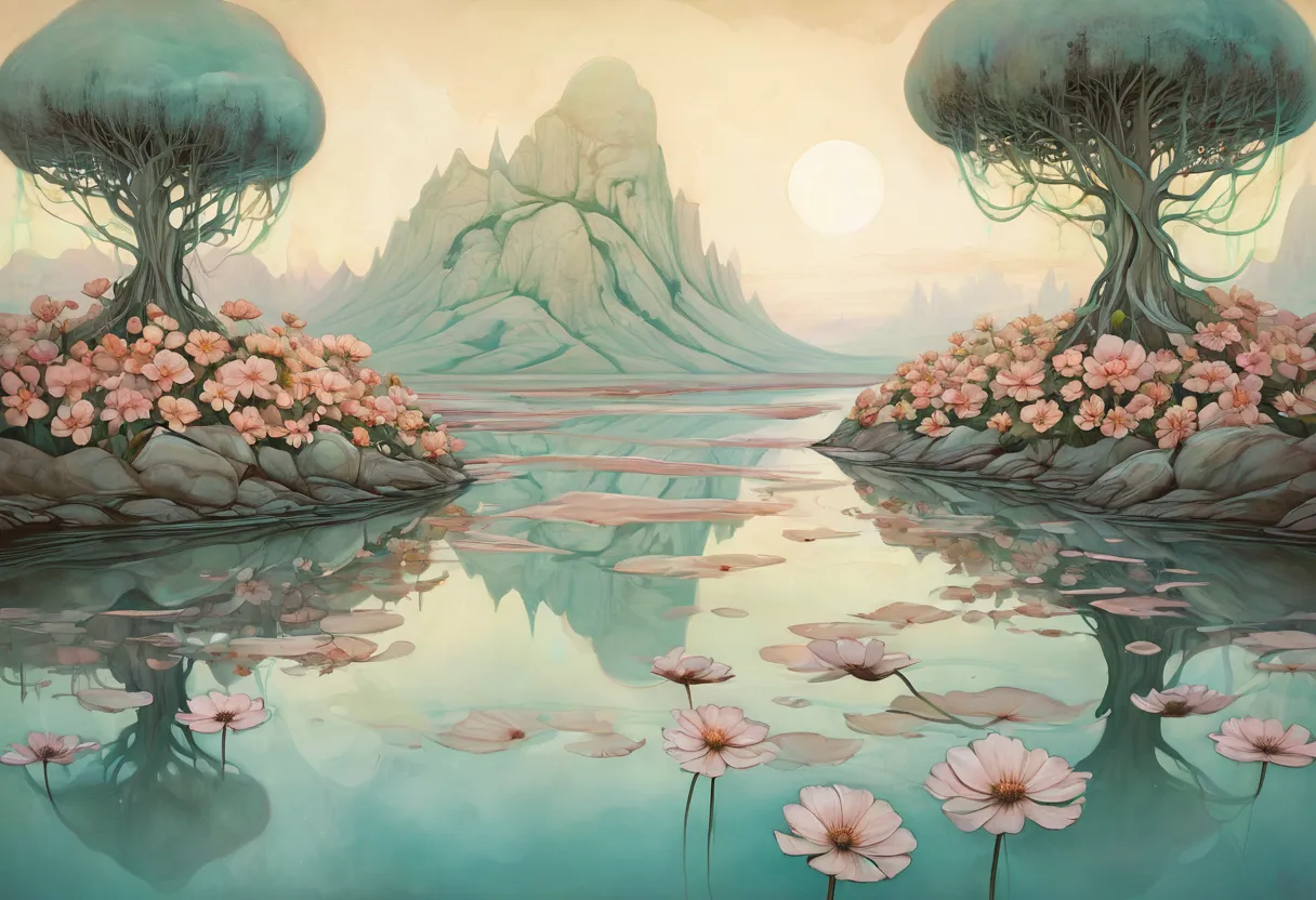 - Сюрреалистические элементы: Включение абстрактных форм, фантастических существ и причудливых природных мотивов.