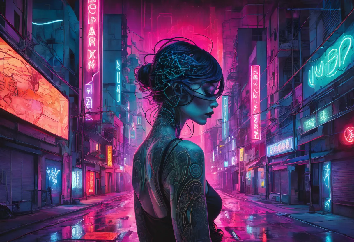 - Цветовая палитра: Яркие, насыщенные цвета с акцентом на розовые, фиолетовые и голубые оттенки. Часто присутствуют градиенты и плавные переходы между цветами.