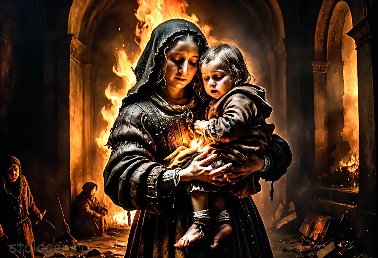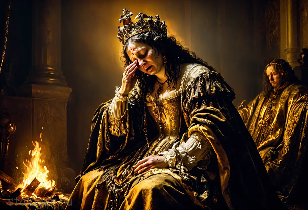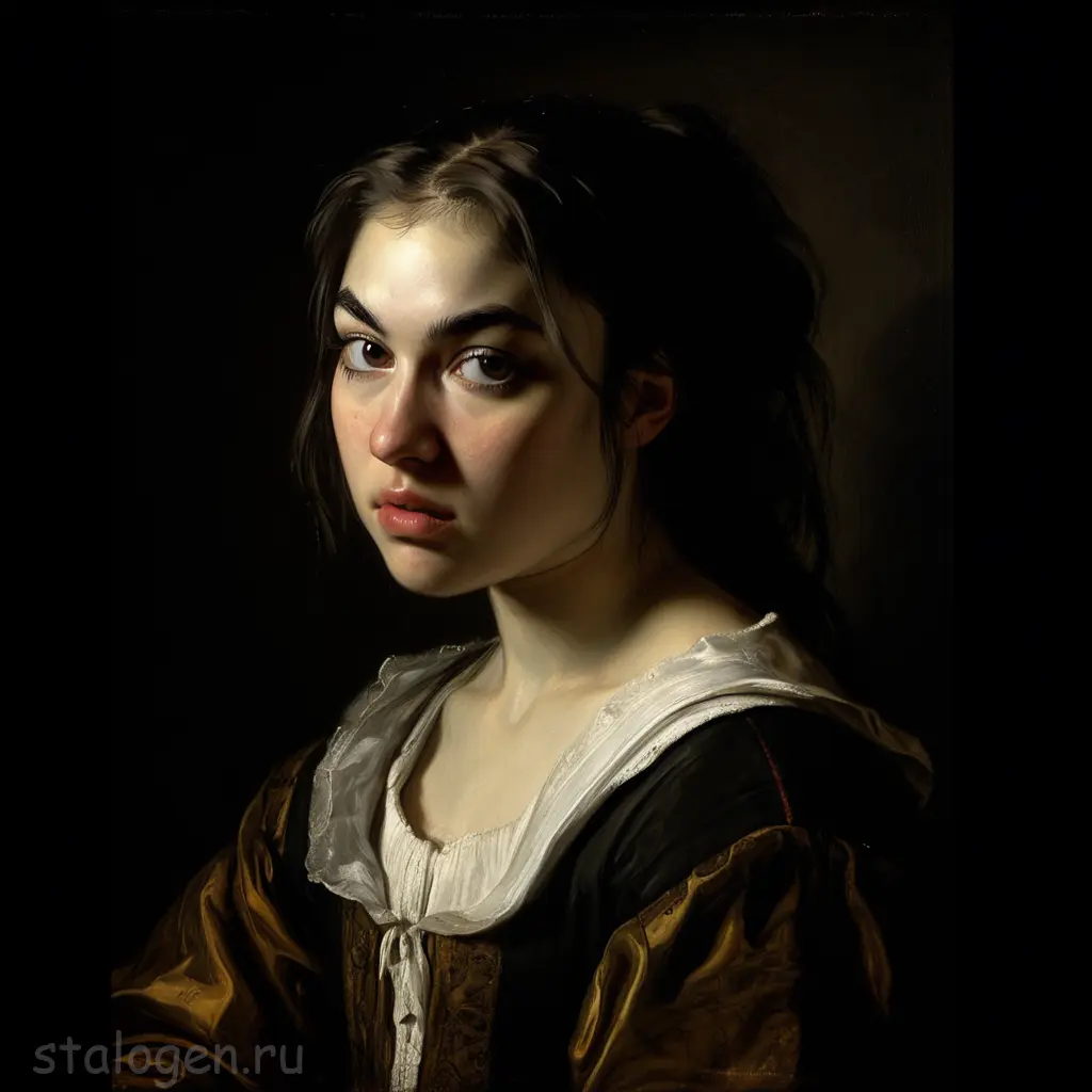 Для подчёркивания стиля отлично подойдёт сочетание: art by Rembrandt, baroque, chiaroscuro, realistic, emotional, flat lighting.